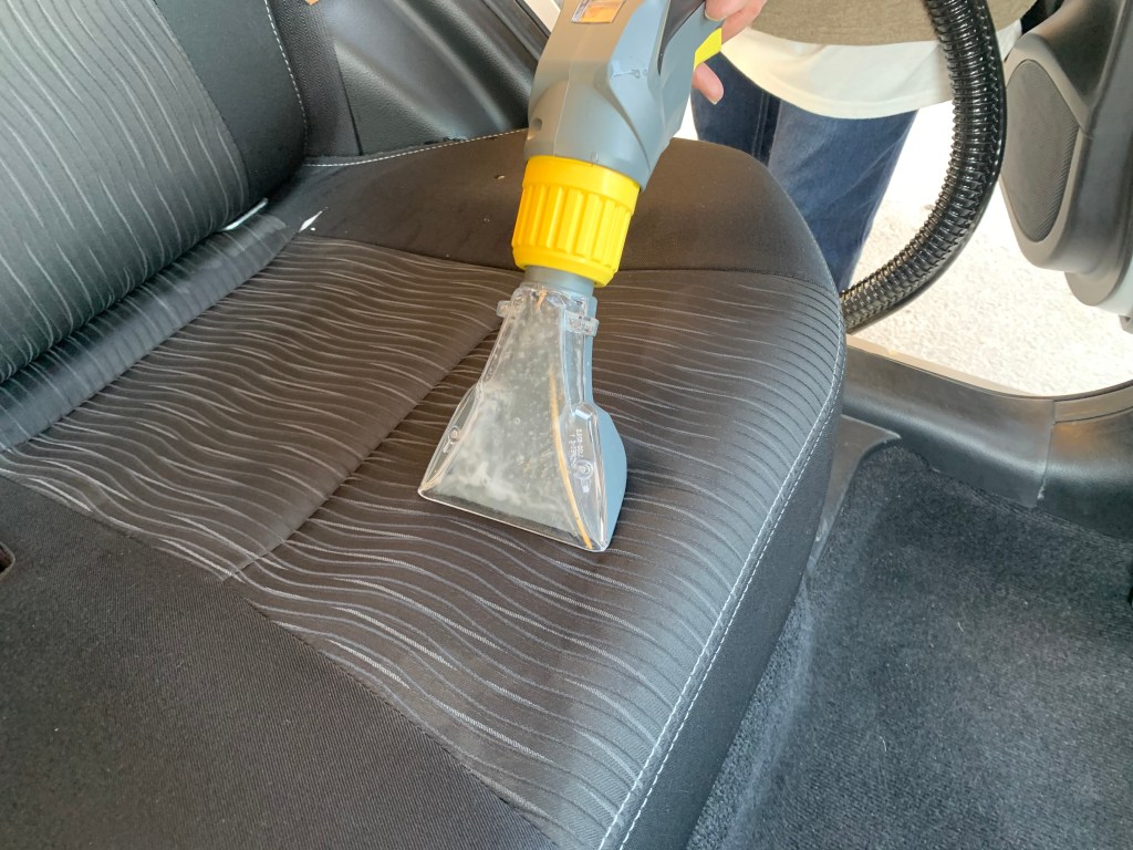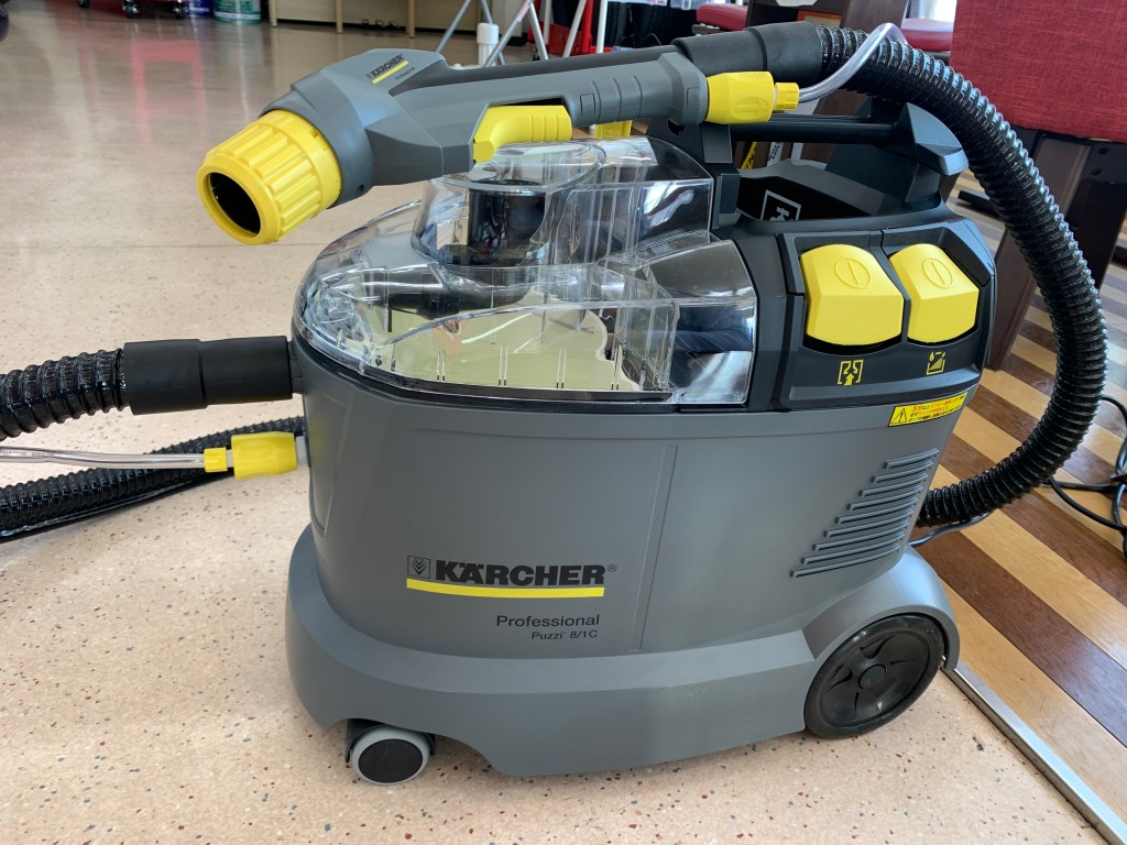ケルヒャー社製、業務用リンスクリーナー PUZZI 8/1Cにて車内洗浄を行ってます。